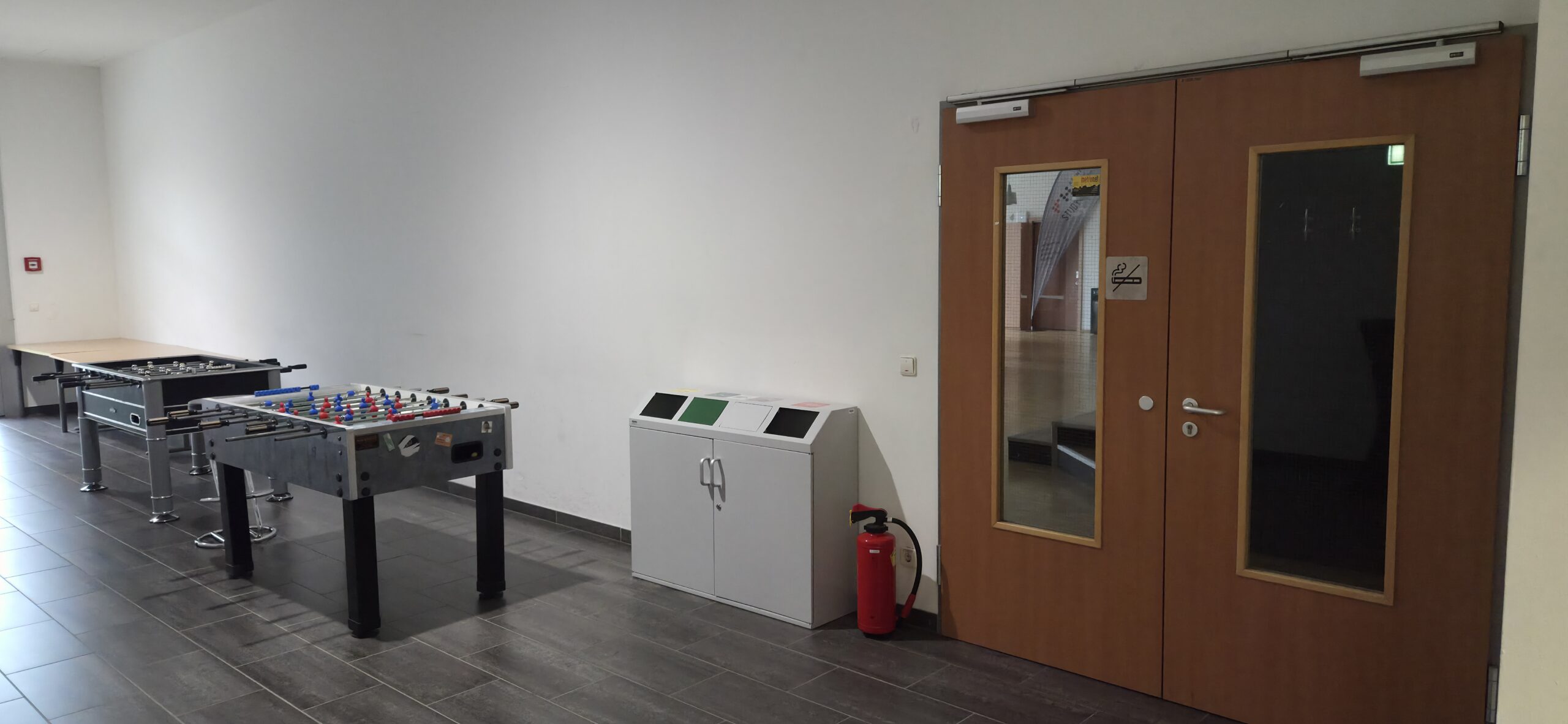 Das Studierendenzimmer bietet den Studierenden ebenfalls eine gute Möglichkeit auch außerhalb der Hörsääle bzw. Seminarräume zu Lernen. Aufgrund seiner kompakten Größe bietet sich das Studierendenzimmer vor allem für Personen an, welche gerne in Ruhe und alleine lernen möchten. Dieser Raum ist zudem auch mit Couches, einem Tischtennistisch und einem Fernseher mit PlayStation ausgestattet, um auch in der Freizeit, das Verweilen angenehmer zu gestalten.