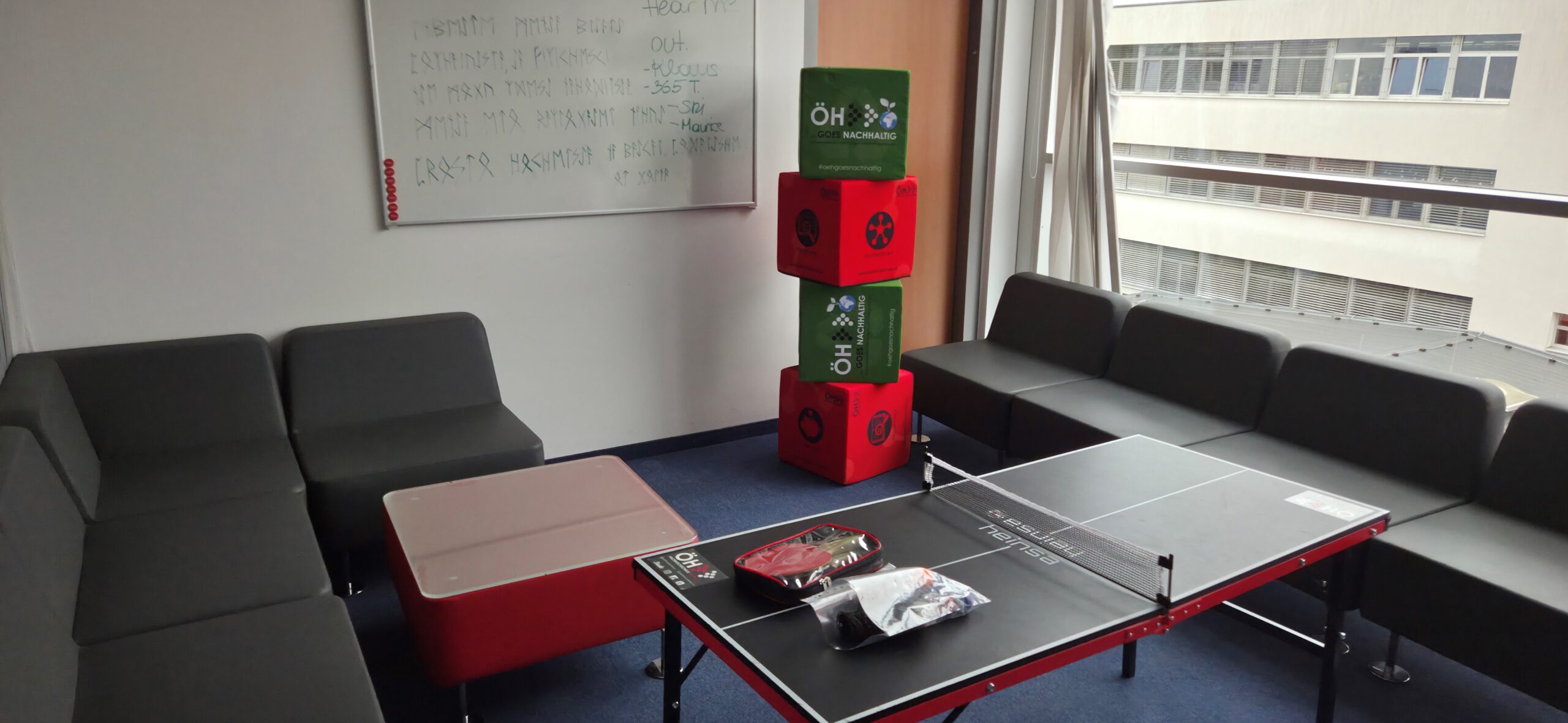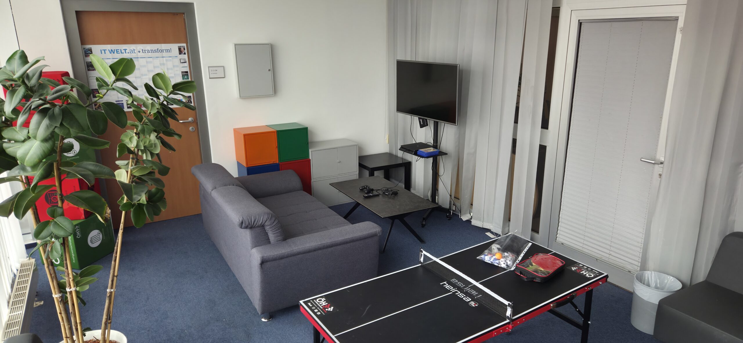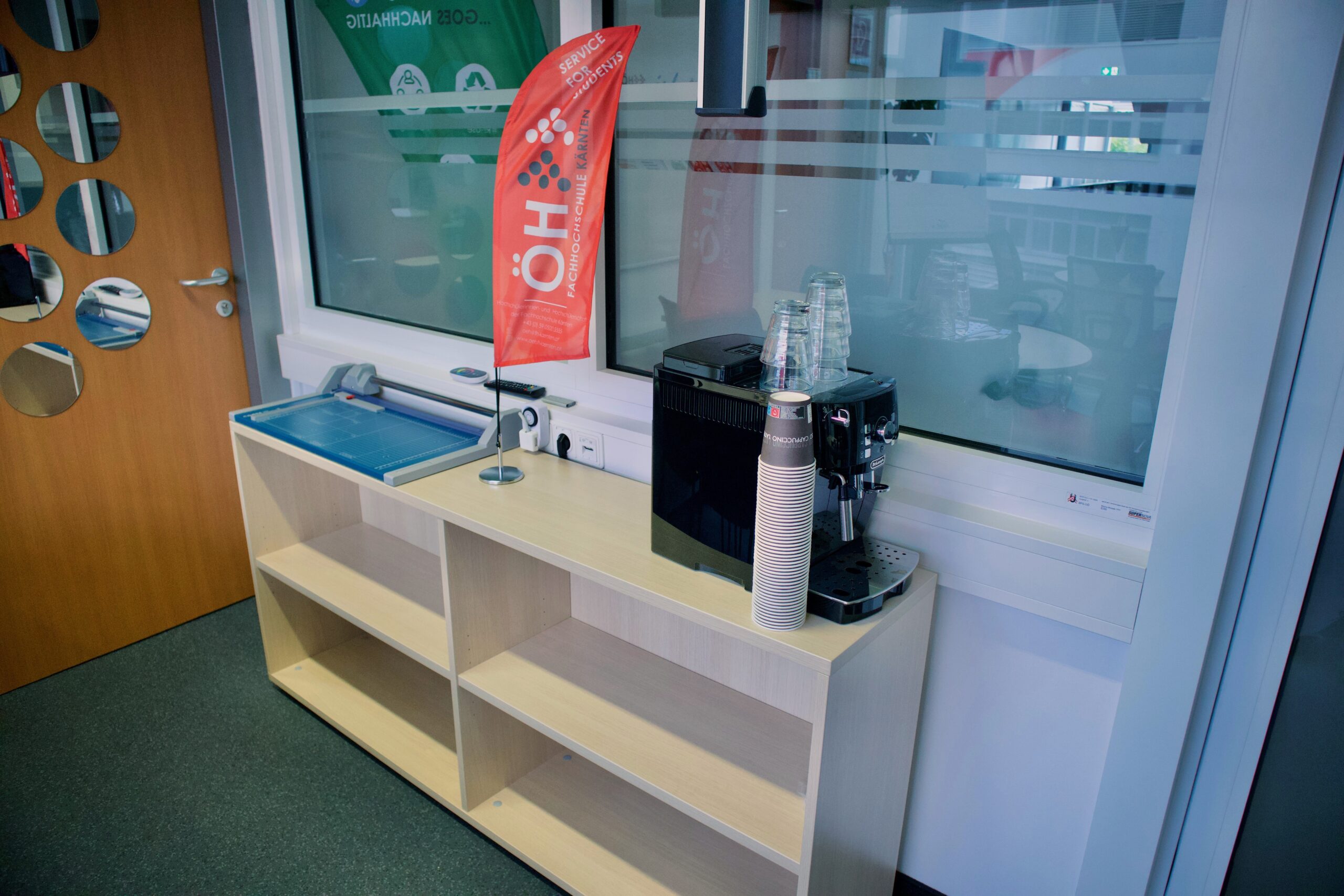 Die Kaffee Lounge ist ein gemütlicher Aufenthaltsraum, der allen Studierenden zur Verfügung steht. Sie bietet die ideale Möglichkeit, zwischen Lehrveranstaltungen eine Pause einzulegen, sich mit Kolleg:innen auszutauschen oder in entspannter Atmosphäre gemeinsam Zeit zu verbringen. Als Treffpunkt am Campus fördert die Lounge nicht nur Erholung, sondern auch den persönlichen Austausch unter Studierenden.