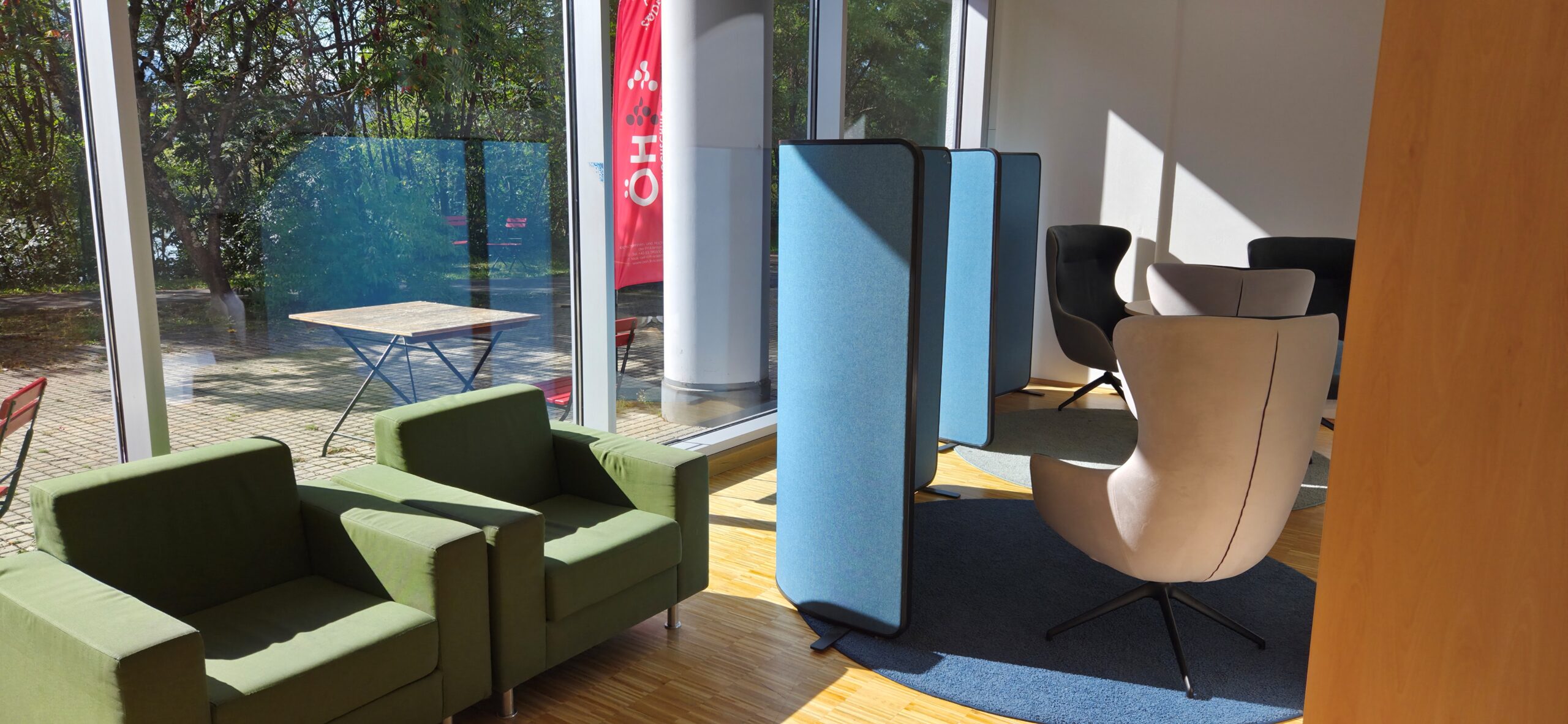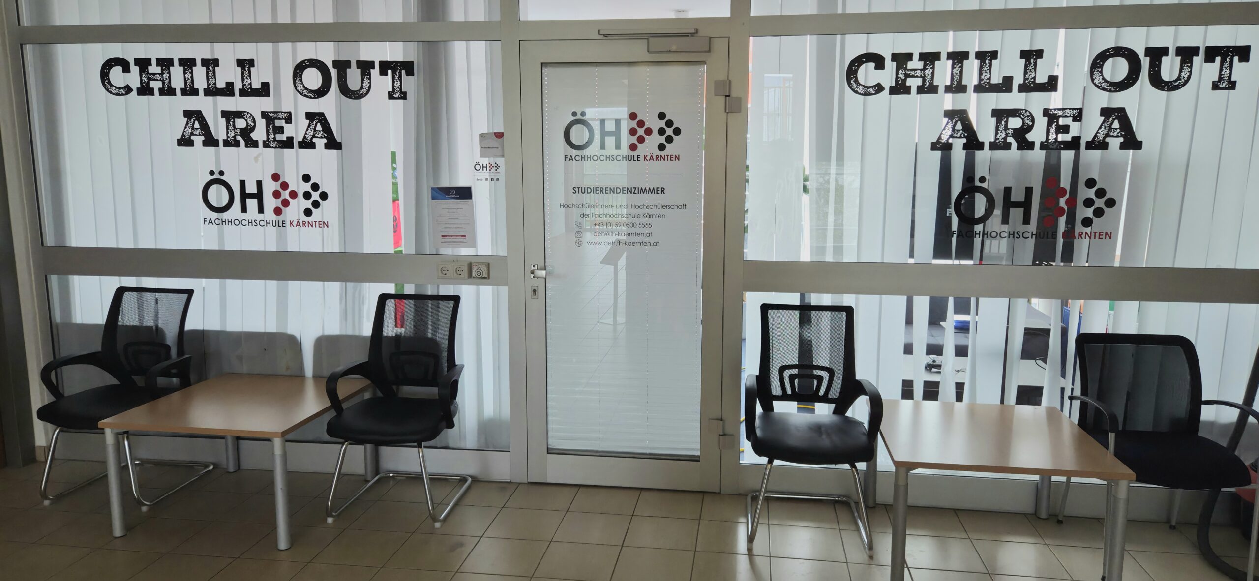 Die Study Lounge am Campus Villach bietet Studierenden einen modernen, hellen und gemütlichen Raum zum Lernen, Arbeiten und Verweilen. Mit einer angenehmen Atmosphäre und komfortabler Ausstattung ist die Lounge der ideale Ort für konzentriertes Arbeiten allein oder in Gruppen. Sie steht allen Studierenden offen und lädt dazu ein, Pausen zwischen den Lehrveranstaltungen sinnvoll zu nutzen oder Projekte in entspannter Umgebung voranzubringen.